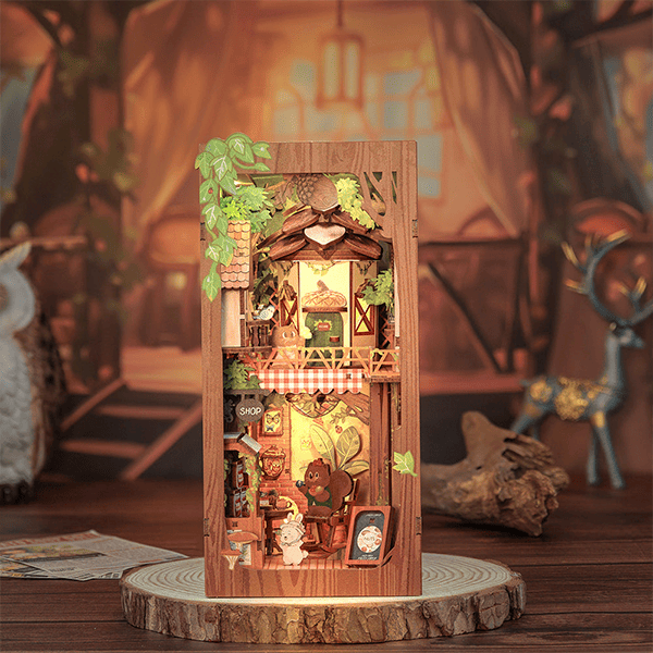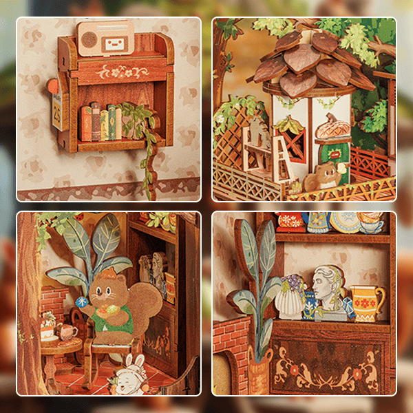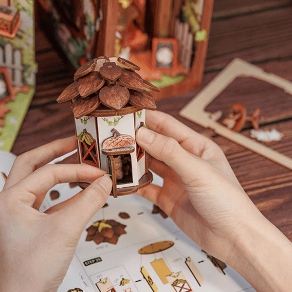 Step inside the enchanted world of the Squirrel Collector, where woodland charm meets meticulous detail. This magical DIY book nook features tiny drawers, acorn shelves, a ladder-styled bookshelf, and a tree trunk doorway, all nestled in a squirrel’s cosy hideaway. Delicate autumn leaves, a miniature desk, and warm interior lighting bring the scene to life. Whether you adore forest creatures or love collecting unique décor, this miniature masterpiece adds a sprinkle of woodland wonder to any shelf. A relaxing, rewarding project and an eye-catching conversation starter in one.