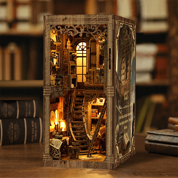 Step into a chamber of lost knowledge with the Ancient Book Collection DIY Book Nook Kit. This spellbinding miniature features towering, aged book spines, engraved covers, and a scroll-strewn reading table surrounded by ancient manuscripts. A spiral staircase, arched alcoves, and wooden floorboards set the scene, while soft LED lighting illuminates arcane symbols, quill pens, and a mystic globe. Subtle golden accents, stone textures, and hidden drawer-like panels add depth to this timeless sanctuary. Ideal for fantasy readers, history buffs, and seekers of knowledge who love their shelves with a little mystery.