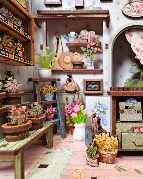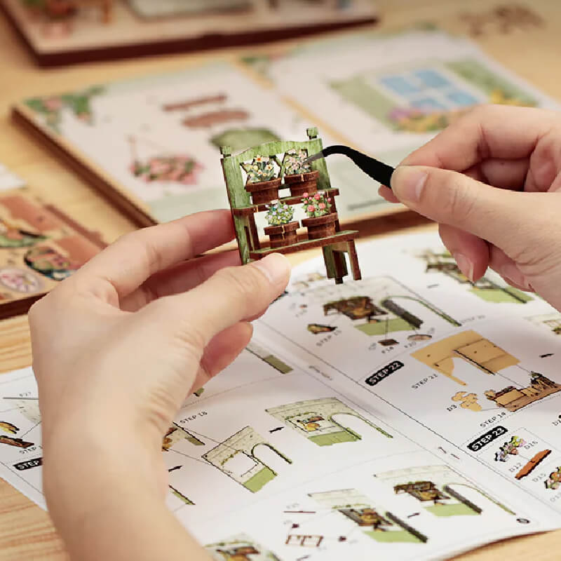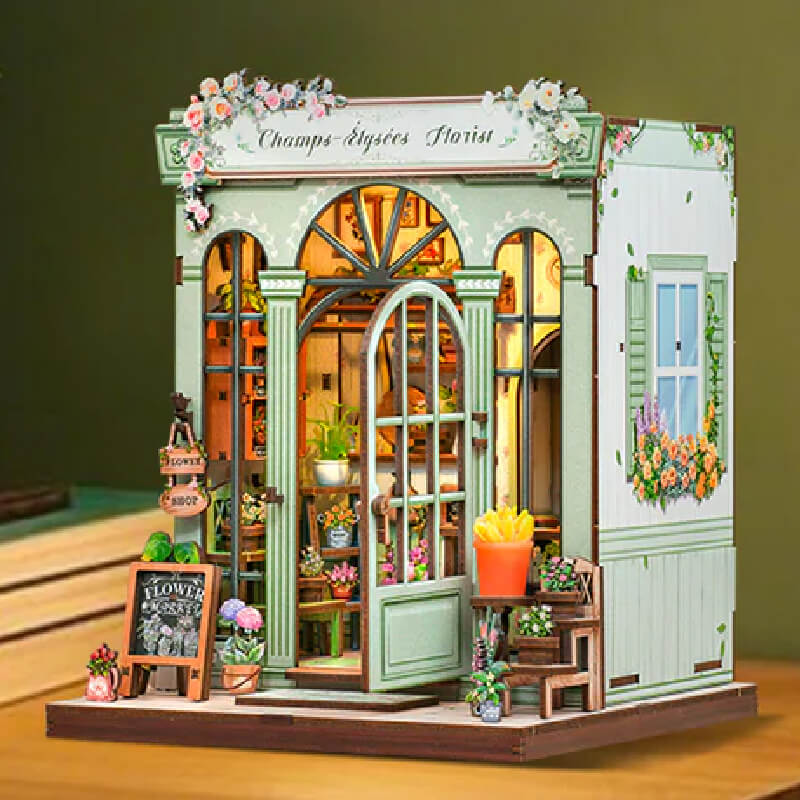 Bring a slice of Paris into your space with this DIY mini-atelier inspired by the chic florist shops of the Champs-Élysées. With 199 precision-cut wood pieces, soft LED lighting, and lush floral décor, this kit invites you to assemble wooden crates of blooms, delicate signage, and leafy greenery that spill onto cobblestone floors. The dust-proof glass door opens to reveal the tiny workshop inside - perfect for quiet evenings, creative calm, or gifting to craft lovers. Ideal for both beginners and experienced builders, this project delivers beautiful detail, timeless style, and a story-filled display piece ready to shelf.