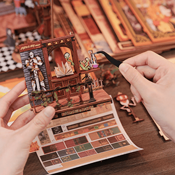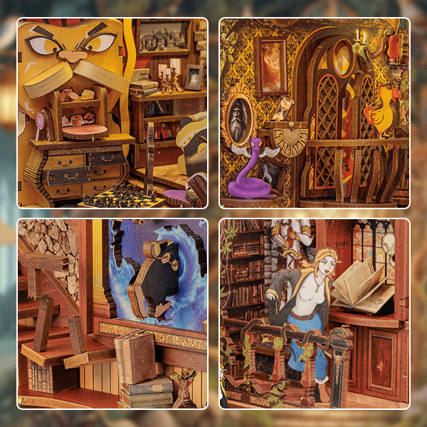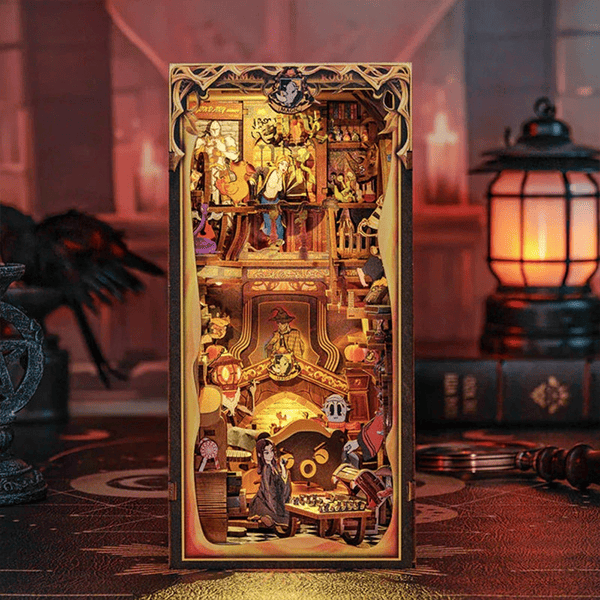Discover a hidden haven where magical creatures meet in the Fantastic Animal Common Room DIY Book Nook Kit. This whimsical build features arched doorways, vintage armchairs, and a grand fireplace surrounded by creature-themed artefacts, enchanted books, and glowing lanterns. A spiral wooden staircase leads to an upper gallery of mystical trophies, while warm LED lighting bathes the room in a golden glow. From feathered quills to horned statues, every element invites curiosity and imagination. Ideal for fans of magical beasts, fantastical worlds, and those who love bringing stories to life—one detail at a time.