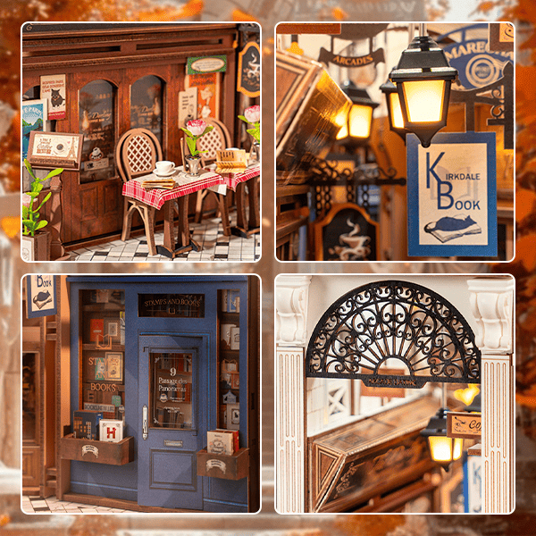 Step into the Paris Arcade, a delightful diorama of cobbled streets, arched windows, and glowing lamp posts. Intricate flower boxes, vintage signage, and a charming outdoor café chair recreate the essence of a romantic Paris passageway. Delicate awnings and a grand glass-roof canopy bathe the arcade in warm light from the built-in LEDs, illuminating every lovingly crafted detail. Ideal for DIY lovers and Francophiles, this miniature build offers a calming escape and a touch of joie de vivre for your bookshelf or desk.