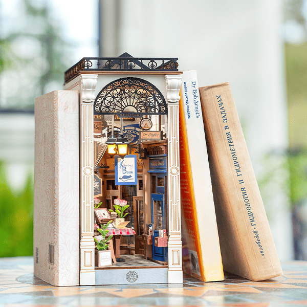 Capture the charm of Parisian streets with the Paris Arcade Book Nook Kit. A magical miniature of boutique elegance, bustling cafés, and twinkling lights—this enchanting build brings the spirit of Paris right to your shelf.