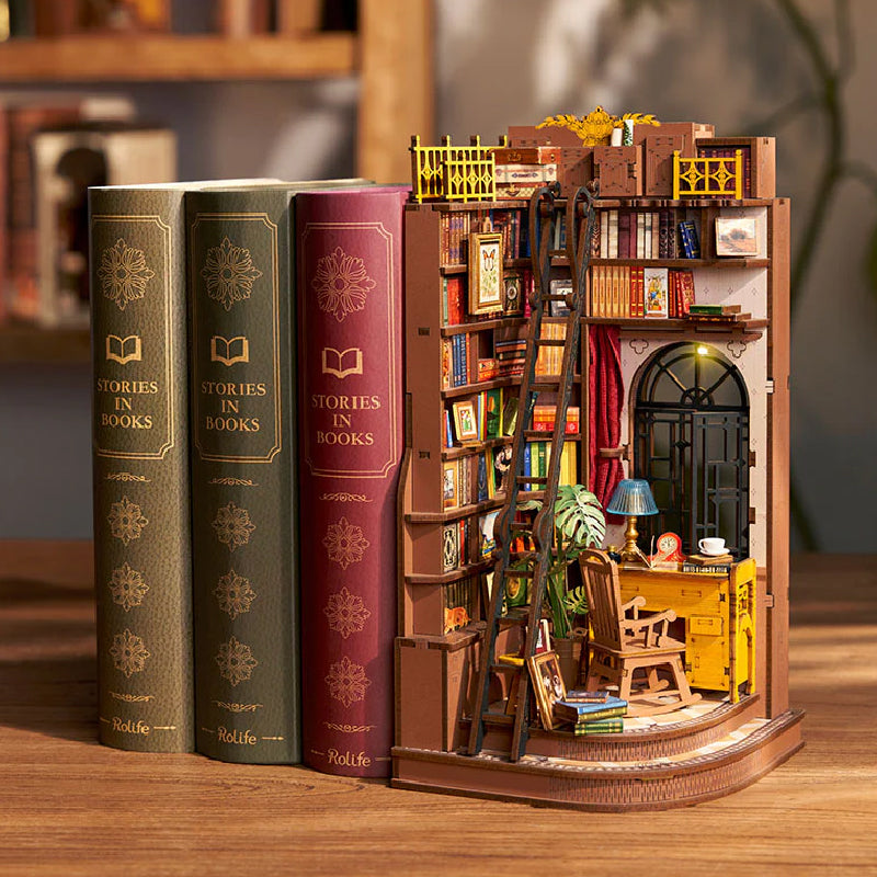 Each nook captures a miniature world like a scene frozen in time, nestled perfectly between your books.