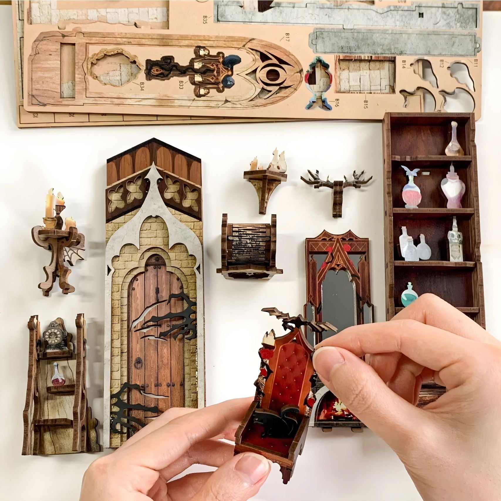 cobbled floors and ancient relics hidden within. From enchanted bookshelves to ivy-draped towers, every element is crafted with storybook precision and gothic charm. Ideal for fantasy lovers, medieval dreamers, and DIY crafters alike, this magical book nook transforms any shelf into a realm of quiet grandeur and starlit imagination.