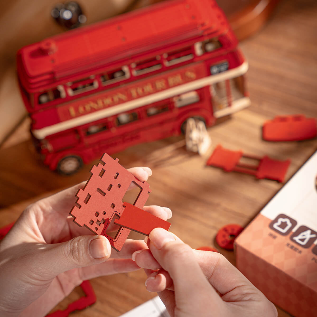 Take a creative journey through the streets of London with the London Tour Bus 3D Wooden Puzzle. This charming model captures the essence of the city’s famous double-decker bus, complete with realistic detailing, clean wood finishes, and smooth-rolling wheels that make it more than a static display. Assemble the upper deck, open doors, classic London signage and cityscape-inspired base, all crafted with precision laser-cut wood. Perfect for hobbyists, collectors, and lovers of London culture.
